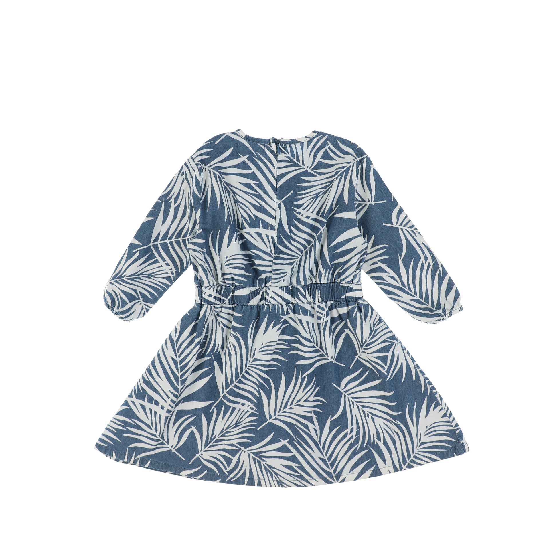 3/4 SLEEVES DENIM PALM LEAF DRESS